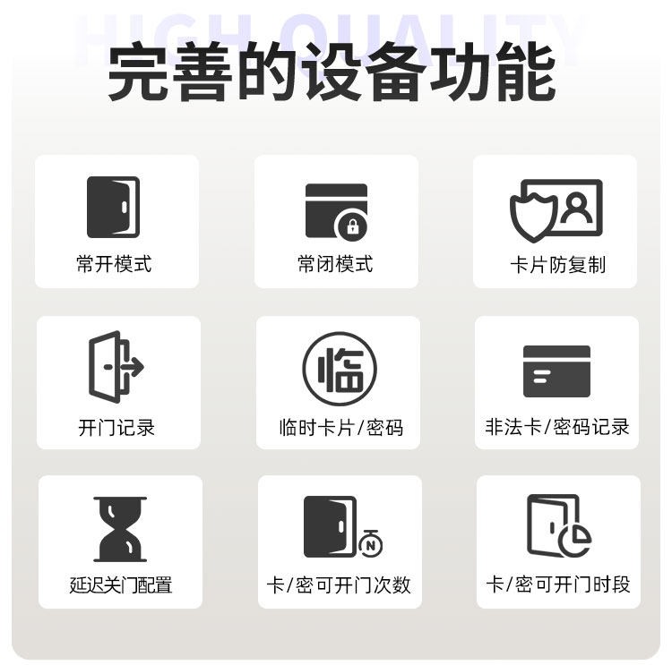 花莲这款智能门锁提供室内门锁和防盗门锁两种选择,其中室内门锁尺寸为 2806521mm,适配 5050 锁体;防盗门锁尺寸为 3657021mm,适配 6068 锁体,可满足不同场景的安装需求。它采用铝合金一体成型搭配钢化玻璃面板打造,兼具坚固耐用的品质与简洁美观的视觉效果。门锁支持蓝牙无线通讯,解锁方式丰富多样,密码、卡片、蓝牙、钥匙四种方式随心选择,满足不同使用习惯与应急需求。其工作温度范围为 - 20~70℃,能适应多数地区的气候条件,采用碱性电池供电,安装更换便捷,是兼具安全性与实用性的门锁选择。
